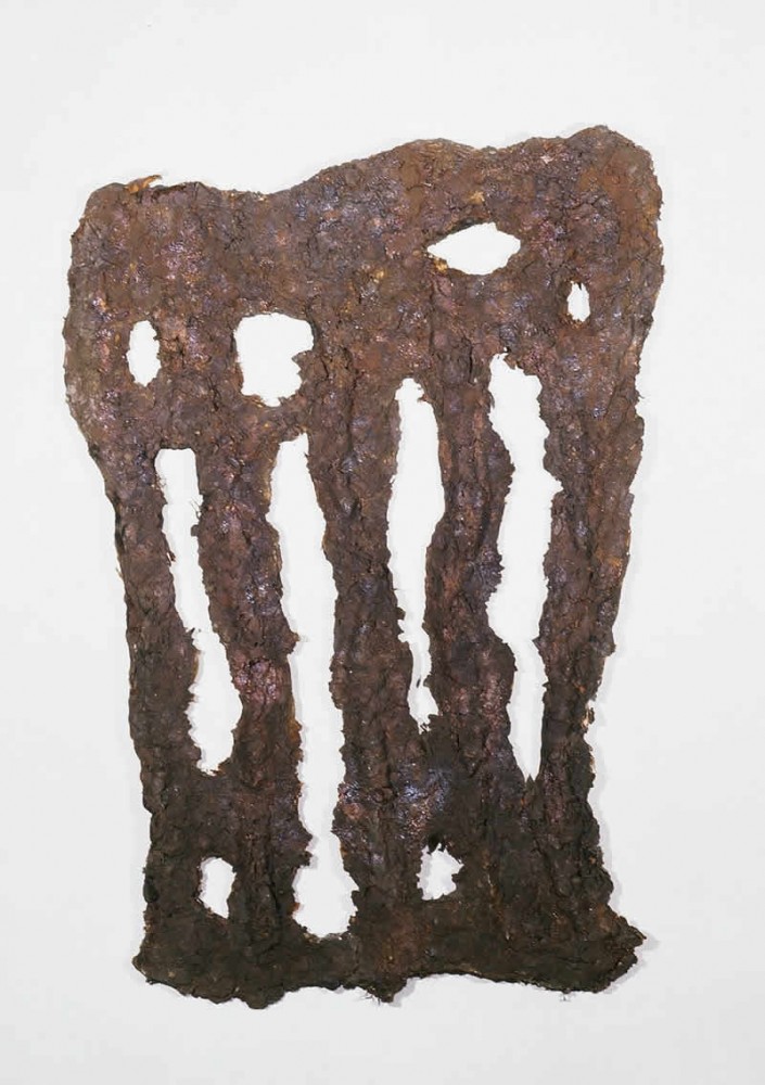 Iron filings, Wood bark , Scrim, paper mash 35cm dia. 23kg
